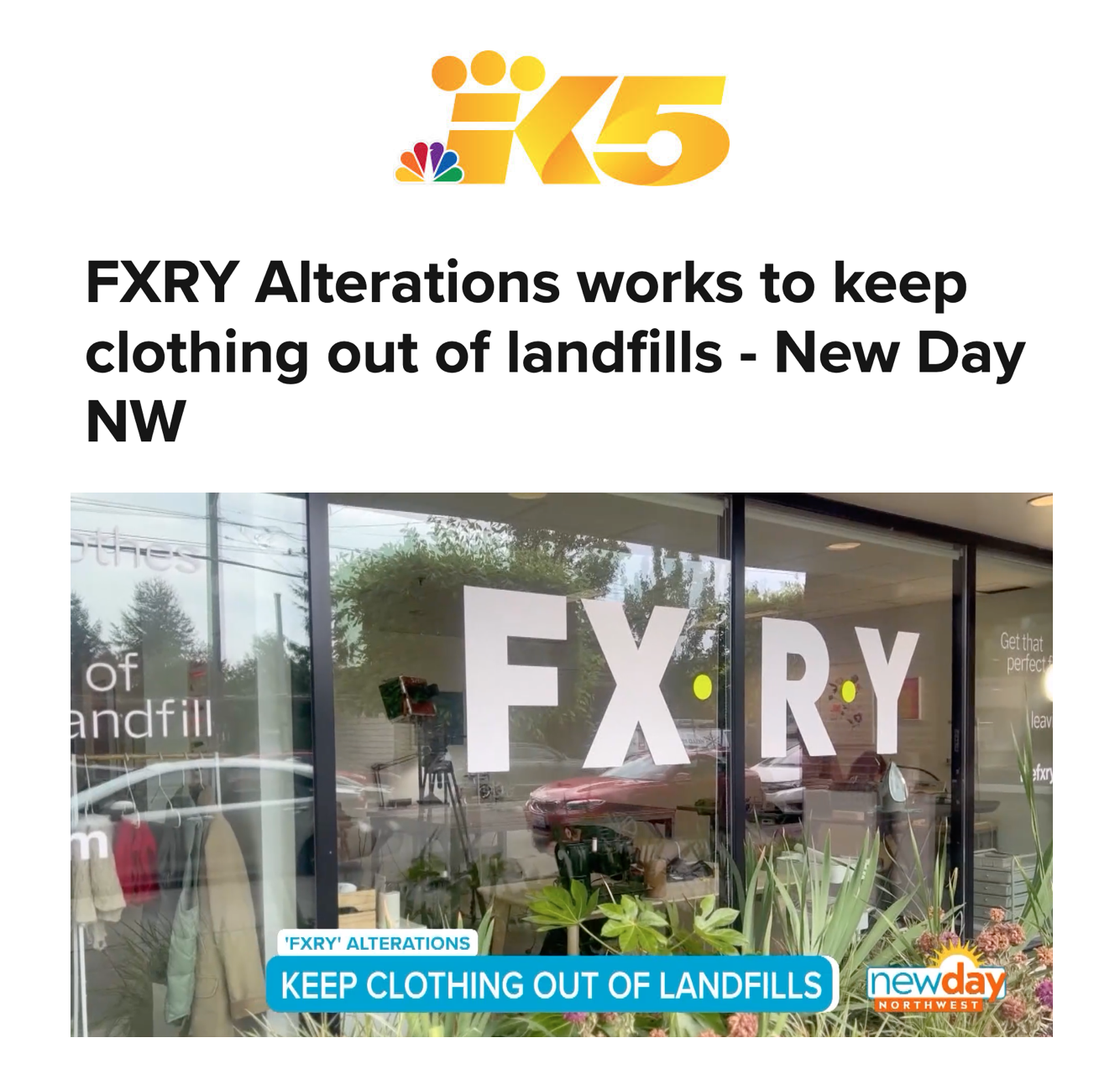 FXRY, the fashion industry’s go-to service provider for modern clothing repairs and alterations, was recently featured on King 5’s New Day NW. Host Kelly Hanson toured the new flagship studio in Seattle’s Mount Baker neighborhood to learn more about the FXRY’s mission to keep clothing in rotation and out of landfills.